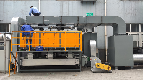 該熱量通過催化分解床內的熱交換器部分再用來加熱脫附出的高濃度廢氣,另外一部分加熱室外來的空氣做活性碳脫附氣體 使用,再生處理系統靠廢氣中的有機廢氣做能源,在無須外加能源基礎上使再生過程達到自平衡循環,極大地減少能耗,并且無 二次污染的產生,整套吸附和催化分解過程自PLC實現自動控制。